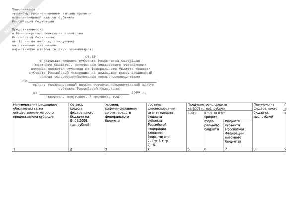 - 784Отчет о расходах бюджета субъекта Российской Федерации, источником финансового обеспечения которых является субвенция, и о достижении целевых прогнозных показателей осуществления органами государственной власти субъектов Российской Федерации отдельных полномочий Российской Федерации в области водных отношений (действует с 1 января 2009 года в отношении отчетов за I квартал 2009 года)