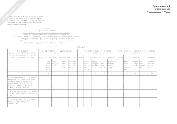 - 790Отчет о расходах бюджета субъекта Российской Федерации и (или) местного бюджета, источником финансового обеспечения которых является субсидия из федерального бюджета (приложение к соглашению о порядке и условиях предоставления субсидий из федерального бюджета бюджету субъекта Российской Федерации на мероприятия по улучшению жилищных условий граждан, проживающих в сельской местности)