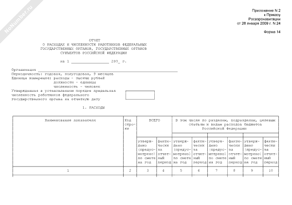 - 789Отчет о расходах и численности работников федеральных государственных органов, государственных органов субъектов Российской Федерации (форма № 14)