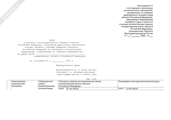 - 787Отчет о расходах консолидированного бюджета субъекта РФ, источником финансового обеспечения которых являются субсидии бюджетам субъектов РФ на реализацию дополнительных мероприятий, направленных на снижение напряженности на рынке труда (приложение к Соглашению о реализации дополнительных мероприятий, направленных на снижение напряженности на рынке труда субъекта Российской Федерации, заключаемого Федеральной службой по труду и занятости с высшим исполнительным органом государственной власти субъекта РФ)