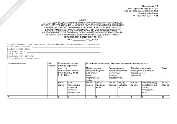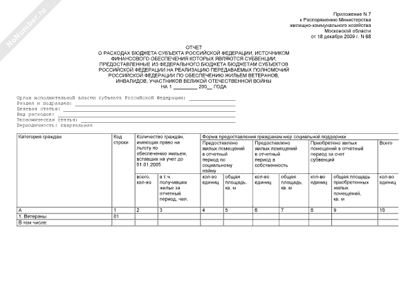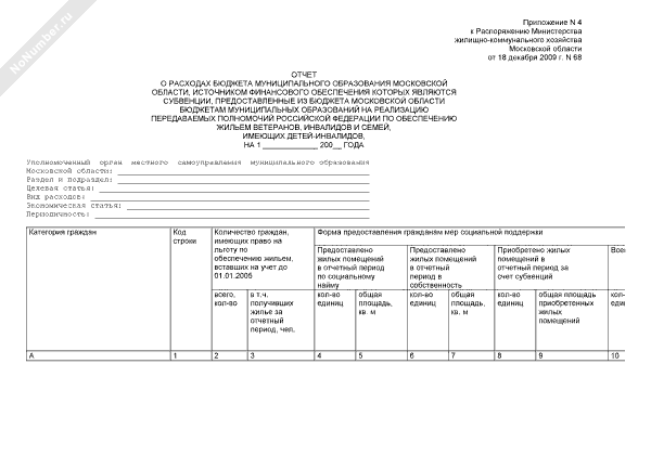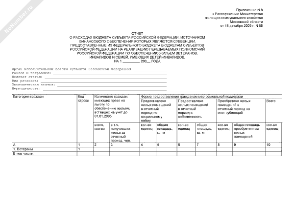 - 820Отчет о расходах бюджета субъекта Российской Федерации, источником финансового обеспечения которых являются субвенции, предоставленные из федерального бюджета бюджетам субъектов Российской Федерации на реализацию передаваемых полномочий Российской Федерации по обеспечению жильем ветеранов, инвалидов и семей, имеющих детей-инвалидов и постоянно проживающих на территории Московской области