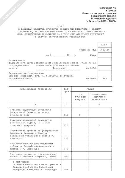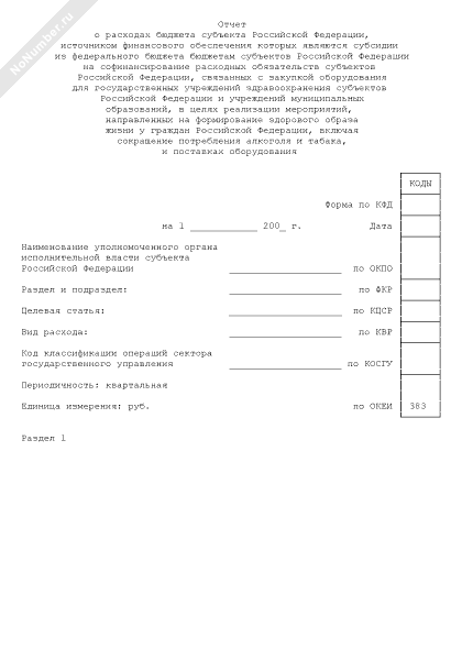 - 805Отчет о расходах бюджета субъекта РФ, источником финансового обеспечения которых являются субсидии из федерального бюджета бюджетам субъектов РФ на софинансирование расходных обязательств субъектов РФ, связанных с закупкой оборудования для государственных учреждений здравоохранения субъектов РФ и учреждений муниципальных образований, в целях реализации мероприятий, направленных на формирование здорового образа жизни у граждан Российской Федерации, включая сокращение потребления алкоголя и табака, и поставках оборудования