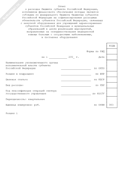 - 807Отчет о расходах бюджета субъекта РФ, источником финансового обеспечения которых являются субсидии из федерального бюджета бюджетам субъектов РФ на софинансирование расходных обязательств субъектов РФ, связанных с закупкой оборудования для учреждений здравоохранения субъектов РФ и муниципальных образований в целях реализации мероприятий, направленных на совершенствование медицинской помощи больным с сосудистыми заболеваниями, и поставках оборудования