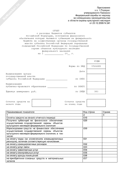 - 808Отчет о расходах бюджетов субъектов Российской Федерации, источником финансового обеспечения которых являются субвенции из федерального бюджета на осуществление органом государственной власти субъекта Российской Федерации переданных полномочий Российской Федерации по государственной охране объектов культурного наследия федерального значения