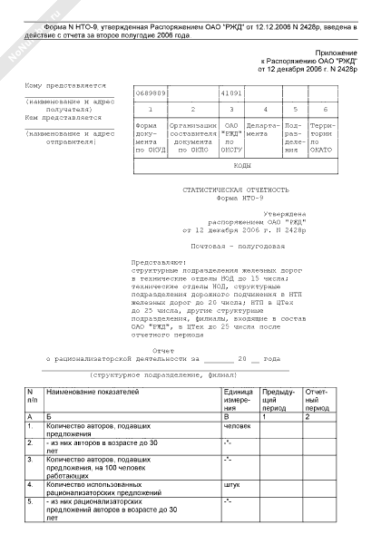 - 902Отчет о рационализаторской деятельности структурного подразделения (филиала), входящего в состав ОАО «РЖД». Форма № НТО-9