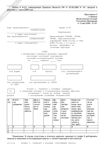 - 915Отчет о реализации социально-правовых гарантий некоторых категорий сотрудников уголовно-исполнительной системы. Форма № 4-СЗ