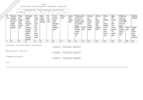 - 919Отчет о реализации высвобождаемого движимого имущества, находящегося в оперативном управлении таможенных органов Российской Федерации