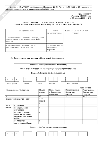 - 1106Отчет о финансировании санатория (санатория-профилактория). Форма № 16-МУ-СКУ