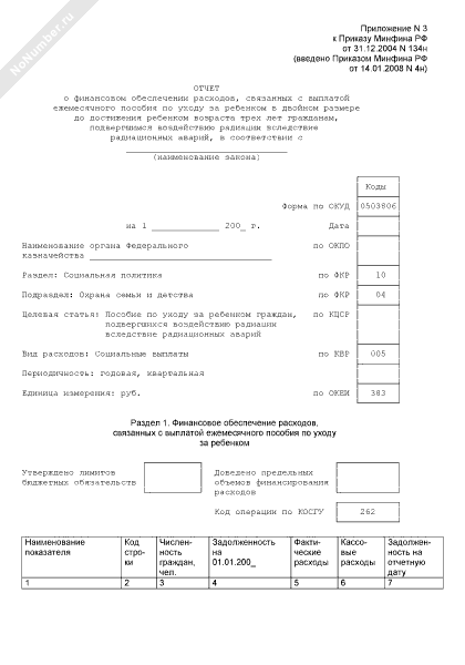 - 1110Отчет о финансовом обеспечении расходов, связанных с выплатой ежемесячного пособия по уходу за ребенком в двойном размере до достижения ребенком возраста трех лет гражданам, подвергшимся воздействию радиации вследствие радиационных аварий, в соответствии с законодательным актом