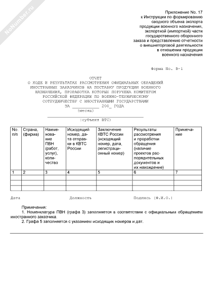 - 1125Отчет о ходе и результатах рассмотрения официальных обращений иностранных заказчиков на поставку продукции военного назначения, проработка которых поручена Комитетом Российской Федерации по военно-техническому сотрудничеству с иностранными государствами. Форма № В-1