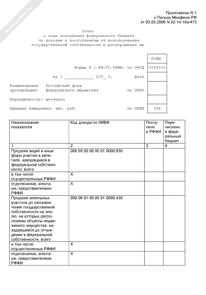 - 1126Отчет о ходе исполнения федерального бюджета по доходам и поступлениям от использования государственной собственности и распоряжения ею. Форма № 1-БФ(ГС-РФФИ)