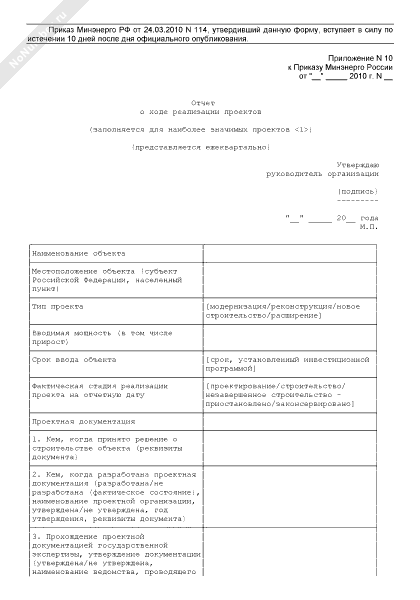 - 1140Отчет о ходе реализации проектов (заполняется для наиболее значимых проектов, ежеквартально)