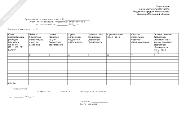 - 1211Отчет об исполнении бюджетных обязательств (приложение к лицевому счету получателя бюджетных средств у Министерства финансов Московской области)
