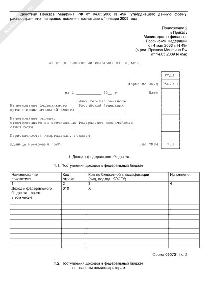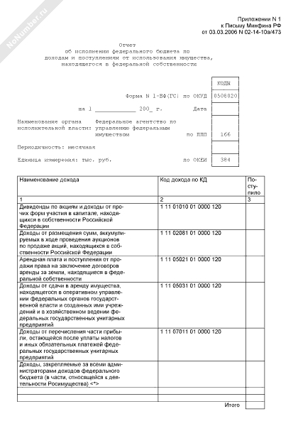- 1207Отчет об исполнении федерального бюджета по доходам и поступлениям от использования имущества, находящегося в федеральной собственности. Форма № 1-БФ(ГС)