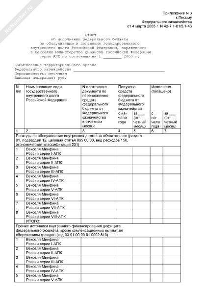 - 1210Отчет об исполнении федерального бюджета по обслуживанию и погашению государственного внутреннего долга Российской Федерации, выраженного в векселях Министерства финансов Российской Федерации серии АПК