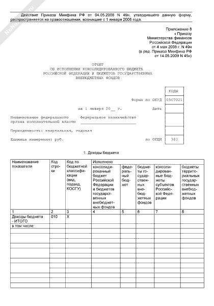 - 1217Отчет об исполнении консолидированного бюджета Российской Федерации и бюджетов государственных внебюджетных фондов, представляемый в Правительство Российской Федерации