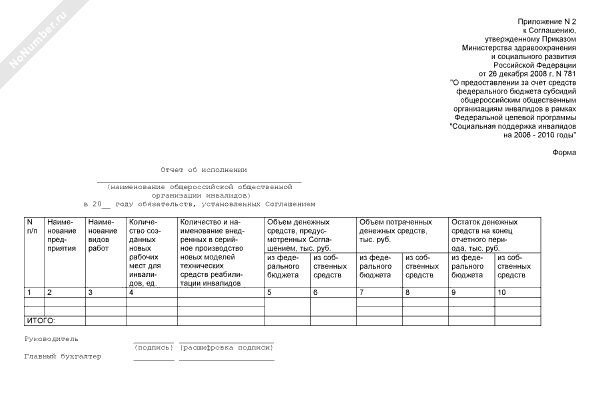 - 1209Отчет об исполнении обязательств (приложение к соглашению о предоставлении субсидии из федерального бюджета на виды работ в соответствии с разделом 5 Федеральной целевой программы «Социальная поддержка инвалидов на 2006–2010 годы») на предприятиях общероссийской общественной организации инвалидов)