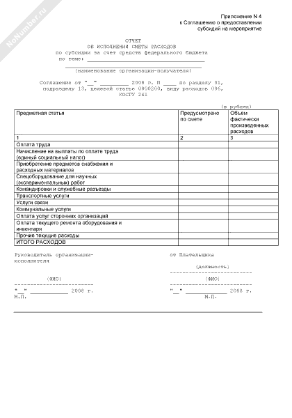 - 1220Отчет об исполнении сметы расходов по субсидии за счет средств федерального бюджета (приложение к соглашению Федерального агентства по науке и инновациям с организацией-исполнителем о предоставлении субсидий на мероприятие международного научно-технического сотрудничества)