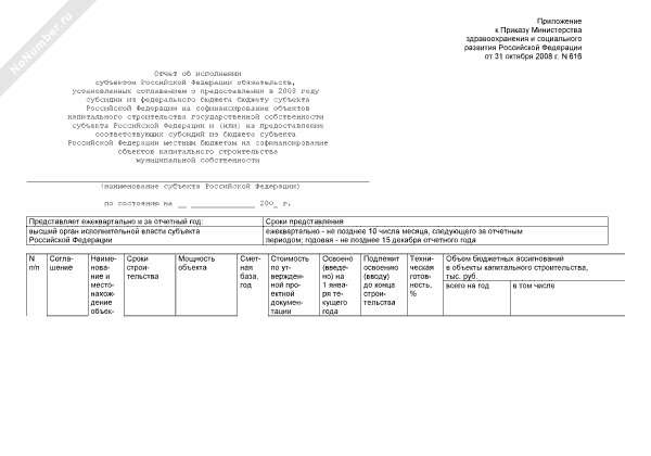 - 1206Отчет об исполнении субъектом Российской Федерации обязательств, установленных соглашением о предоставлении в 2008 году субсидии из федерального бюджета бюджету субъекта Российской Федерации на софинансирование объектов капитального строительства государственной собственности субъекта Российской Федерации и (или) на предоставление соответствующих субсидий из бюджета субъекта Российской Федерации местным бюджетам на софинансирование объектов капитального строительства муниципальной собственности