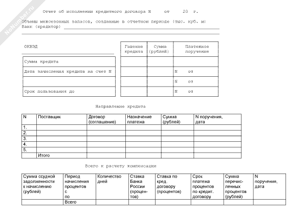- 1236Отчет об исполнении кредитного договора для получения из федерального бюджета субсидий на возмещение части затрат на уплату процентов по кредитам, полученным в российских кредитных организациях на создание межсезонных запасов древесины, сырья и топлива