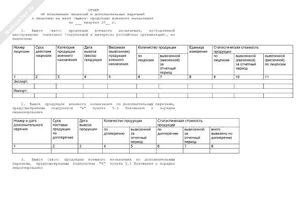 - 1231Отчет об исполнении лицензий и дополнительных перечней к лицензии на ввоз (вывоз) продукции военного назначения