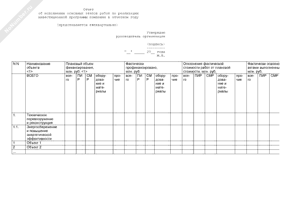 - 1238Отчет об исполнении инвестиционной программы (ежегодный)