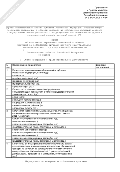 - 1222Отчет об исполнении переданных полномочий в области контроля за соблюдением органами местного самоуправления законодательства о градостроительной деятельности в субъекте Российской Федерации