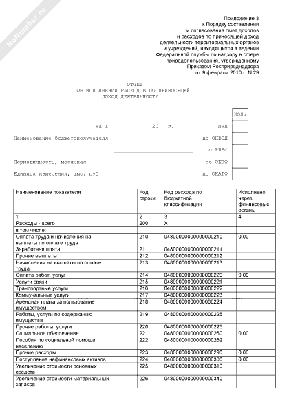 - 1233Отчет об исполнении расходов по приносящей доход деятельности территориальных органов и учреждений, находящихся в ведении Федеральной службы по надзору в сфере природопользования на 2010 год
