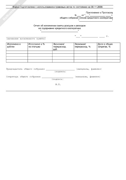 - 1232Отчет об исполнении сметы доходов и расходов на содержание кредитного кооператива (приложение к протоколу общего собрания членов кредитного кооператива)