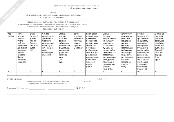 - 1221Отчет об исполнении условий предоставления субсидии и о расходах бюджета субъекта Российской Федерации, связанных с выплатой денежного поощрения лучшим учителям, источником финансового обеспечения которых является субсидия