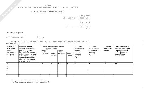 - 1241Отчет об исполнении сетевых графиков строительства проектов (ежеквартальный)