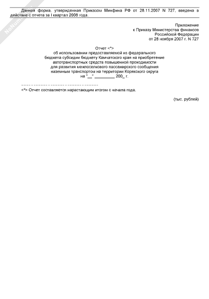 - 1248Отчет об использовании предоставляемой из федерального бюджета субсидии бюджету Камчатского края на приобретение автотранспортных средств повышенной проходимости для развития межпоселкового пассажирского сообщения наземным транспортом на территории Корякского округа
