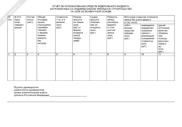 - 1256Отчет об использовании средств федерального бюджета, направленных на индивидуальное жилищное строительство на селе на возвратной основе