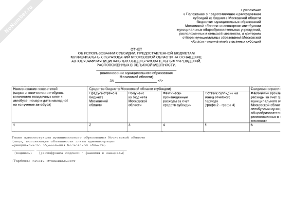 - 1246Отчет об использовании субсидии, предоставленной бюджетам муниципальных образований Московской области на оснащение автобусами муниципальных общеобразовательных учреждений, расположенных в сельской местности
