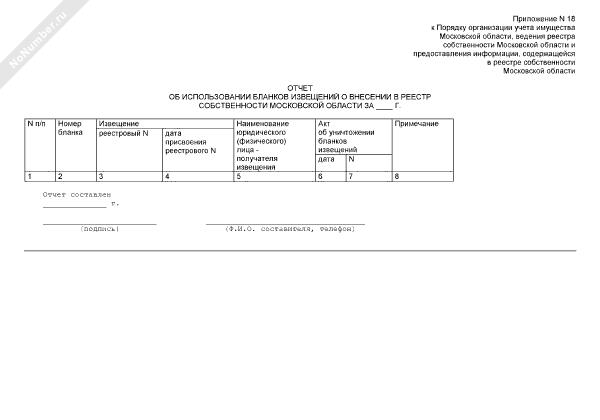 - 1300Отчет об использовании бланков извещений о внесении в реестр собственности Московской области