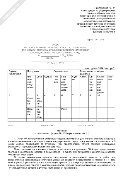 - 1283Отчет об использовании денежных средств, полученных для оплаты экспорта продукции военного назначения для федеральных государственных нужд. Форма № Г-9