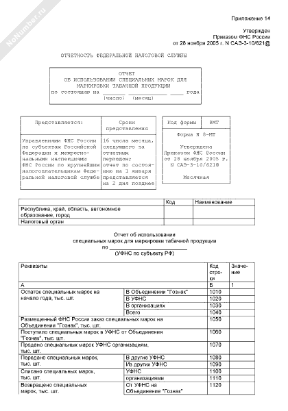 - 1297Отчет об использовании специальных марок для маркировки табачной продукции. Форма № 8-МТ