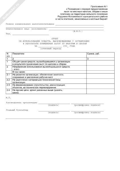 - 1292Отчет об использовании средств, высвобожденных у организации в результате применения льгот по налогам и сборам на территории сельского поселения Радужное Коломенского муниципального района