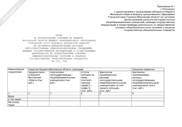 - 1295Отчет об использовании субсидии из бюджета Московской области бюджету муниципального образования «Городской округ Подольск Московской области» на частичное финансирование расходов негосударственных общеобразовательных учреждений, имеющих государственную аккредитацию и осуществляющих деятельность по предоставлению основных общеобразовательных программ в пределах государственных образовательных стандартов