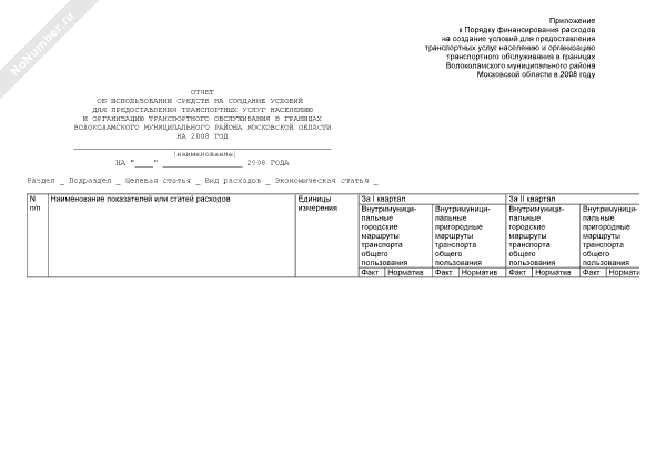 - 1400Отчет об использовании средств на создание условий для предоставления транспортных услуг населению и организацию транспортного обслуживания в границах Волоколамского муниципального района Московской области на 2008 год