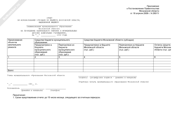 - 1381Отчет об использовании субсидии из бюджета Московской области, выделенной бюджету муниципального образования Московской области на проведение капитального ремонта в муниципальных детских дошкольных учреждениях