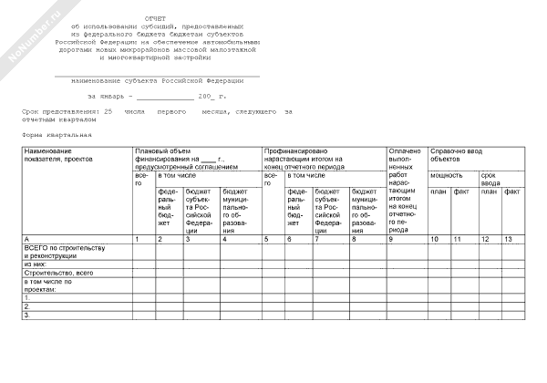 - 1389Отчет об использовании субсидий, предоставленных из федерального бюджета бюджетам субъектов Российской Федерации на обеспечение автомобильными дорогами новых микрорайонов массовой малоэтажной и многоквартирной застройки