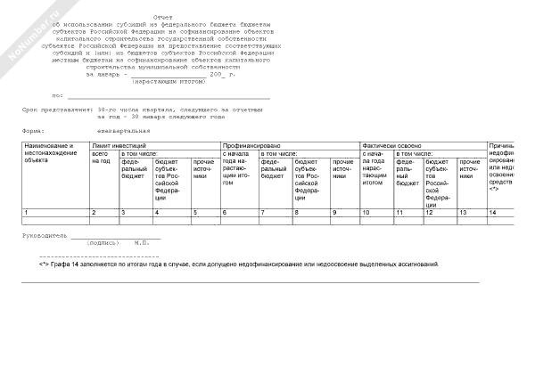 - 1397Отчет об использовании субсидий из федерального бюджета бюджетам субъектов Российской Федерации на софинансирование объектов капитального строительства государственной собственности субъектов Российской Федерации на предоставление соответствующих субсидий и (или) из бюджетов субъектов Российской Федерации местным бюджетам на софинансирование объектов капитального строительства муниципальной собственности