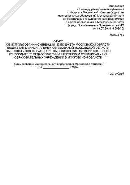 - 1395Отчет об использовании субвенции из бюджета Московской области бюджетам муниципальных образований Московской области на выплату вознаграждения за выполнение функций классного руководителя педагогическим работникам муниципальных образовательных учреждений в Московской области (форма № 5)