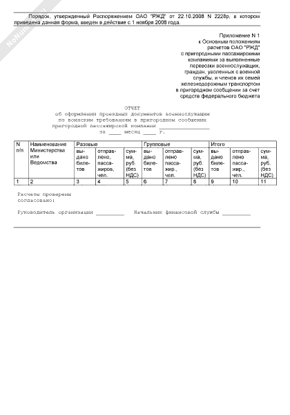 - 1519Отчет об оформлении проездных документов военнослужащим по воинским требованиям в пригородном сообщении пригородной пассажирской компании