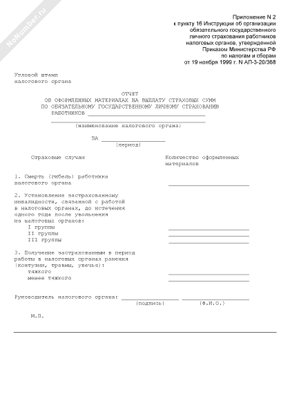 - 1520Отчет об оформленных материалах на выплату страховых сумм по обязательному государственному личному страхованию работников