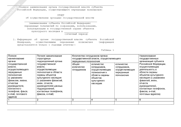 - 1502Отчет об осуществлении органами государственной власти субъекта Российской Федерации переданных полномочий по сохранению, использованию, популяризации и государственной охране объектов культурного наследия