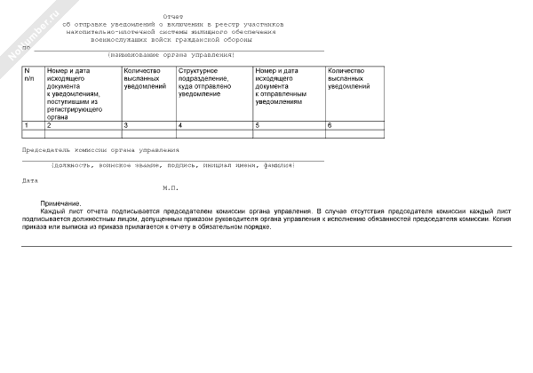 - 1513Отчет об отправке уведомлений о включении в реестр участников накопительно-ипотечной системы жилищного обеспечения военнослужащих войск гражданской обороны