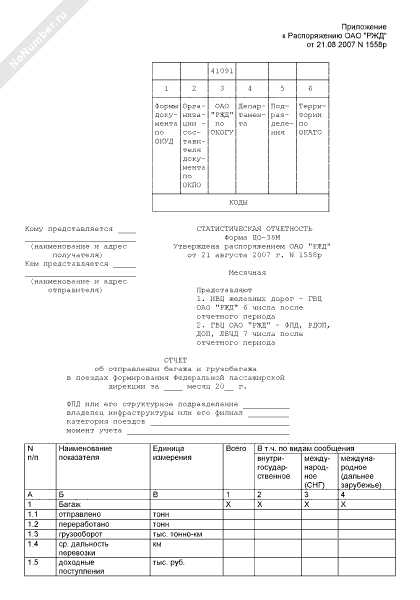 - 1508Отчет об отправлении багажа и грузобагажа в поездах формирования Федеральной пассажирской дирекции. Форма № ЦО-38М