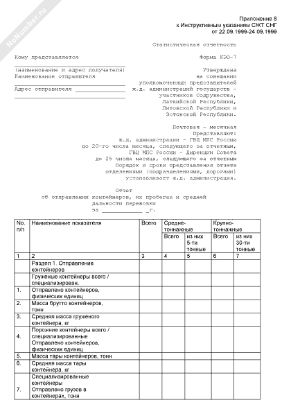 - 1510Отчет об отправлении контейнеров, их пробегах и средней дальности перевозки. Форма № КЭО-7